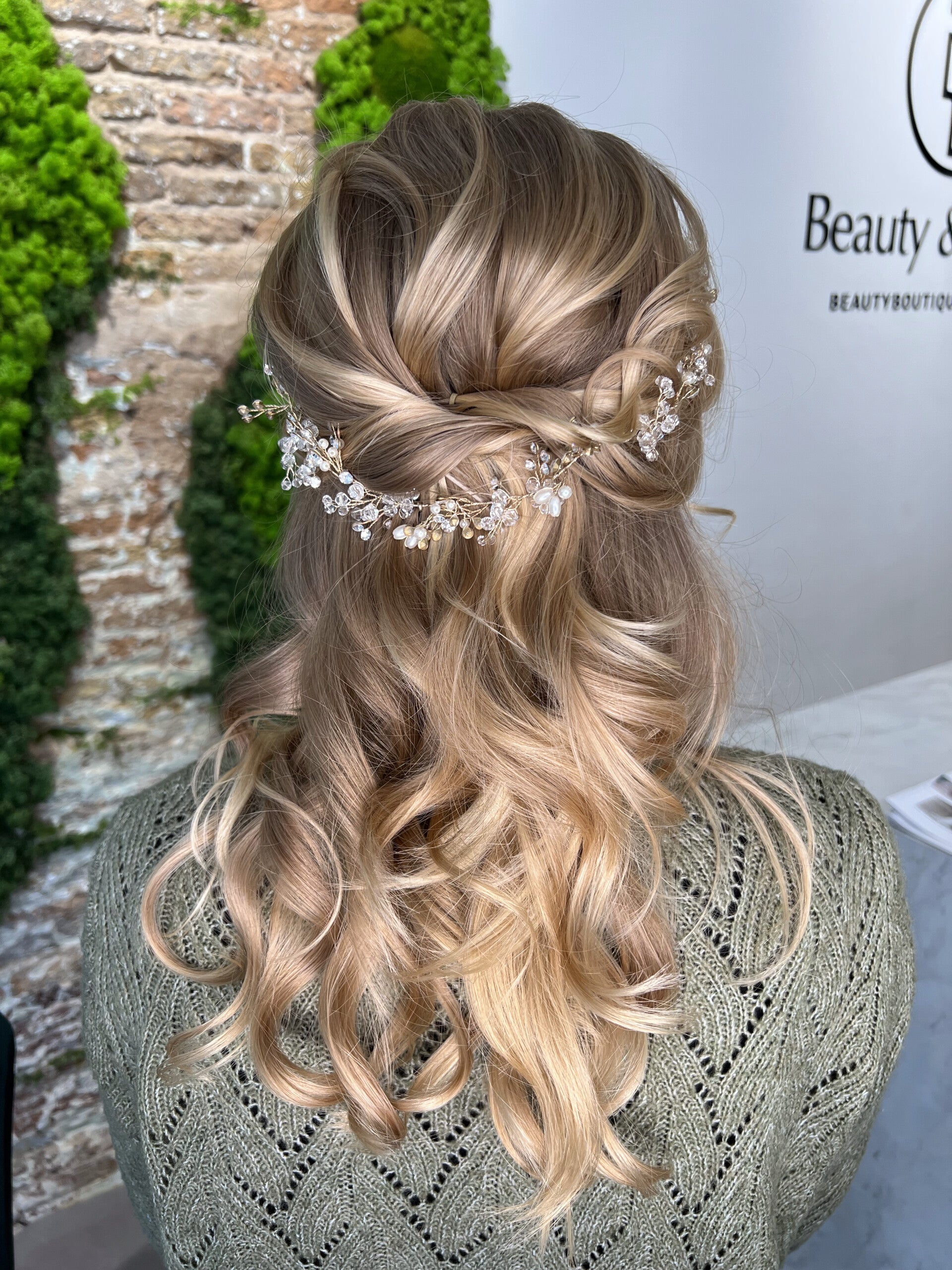 Op de mooiste dag van jouw leven sta je in het middelpunt van de belangstelling. Als vrouw wil je dan natuurlijk vol zelfvertrouwen stralen op JULLIE bruiloft! Het haar perfect gestyled, make-up mooi gedaan en alles uiteraard afgestemd op jou als persoon. Wij kunnen je helpen bij een complete look en ook nog een adviserende rol vervullen wat betreft de juiste accessoires en sieraden die bij uw jurk, kapsel en make-up zullen passen. Zo is het plaatje helemaal compleet en kan je onbezorgd genieten op jullie speciale dag. Een perfecte bruidslook begint dus hier!